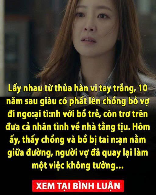 Lấy nhau từ thủa hàn vi tay trắng, 10 năm sau giàu có phất lên chồng bỏ vợ đi ngo:ại tì:nh với bồ trẻ, còn trơ trẽn đưa cả nhân tình về nhà tằng tịu. Hôm ấy, thấy chồng và bồ bị tai n:ạn nằm giữa đường, người vợ đã quay lại làm một việc không tưởng…
