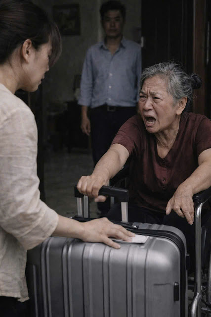 Vào ngày ký đơn ly h/ôn, mẹ chồng tôi – người l/iệt nửa người – gồng mình bằng cánh tay còn lại, cố đẩy chiếc va-li của tôi ra khỏi cửa, miệng không ngừng rủa tôi là “sao chổi”….