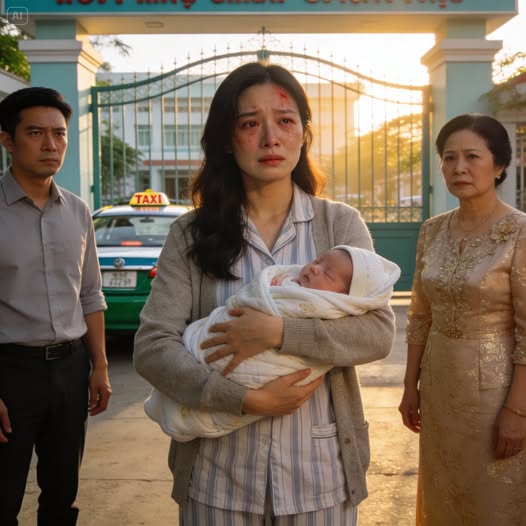 Và rồi đúng 48 giờ sau sinh, khi tôi vừa bế con xuất viện, cả nhà chồng đứng chờ sẵn ngoài cổng, mặt ai cũng lạnh tanh. Mẹ chồng nói một câu khiến tôi rụng rời: