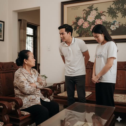 Không khí bỗng đông cứng. Huy sững người, còn mẹ anh tái mặt, đứng bật dậy: