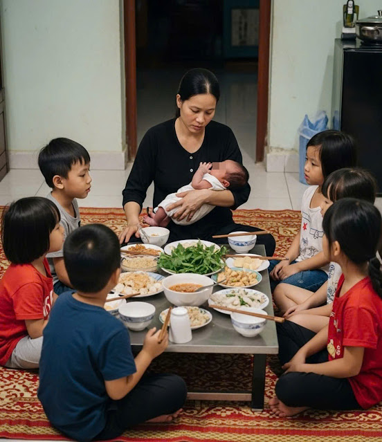 Đêm hôm ấy, căn nhà trở nên ồn ào và hỗn loạn chưa từng có. 7 đứa trẻ. Đứa khóc, đứa đòi ăn, đứa sợ hãi không dám ngủ. Tôi, một người phụ nữ vừa chịu cú sốc lớn nhất cuộc đời, lại phải xắn tay áo lên pha sữa, nấu cháo, dỗ dành từng đứa lạ huơ lạ hoắc.