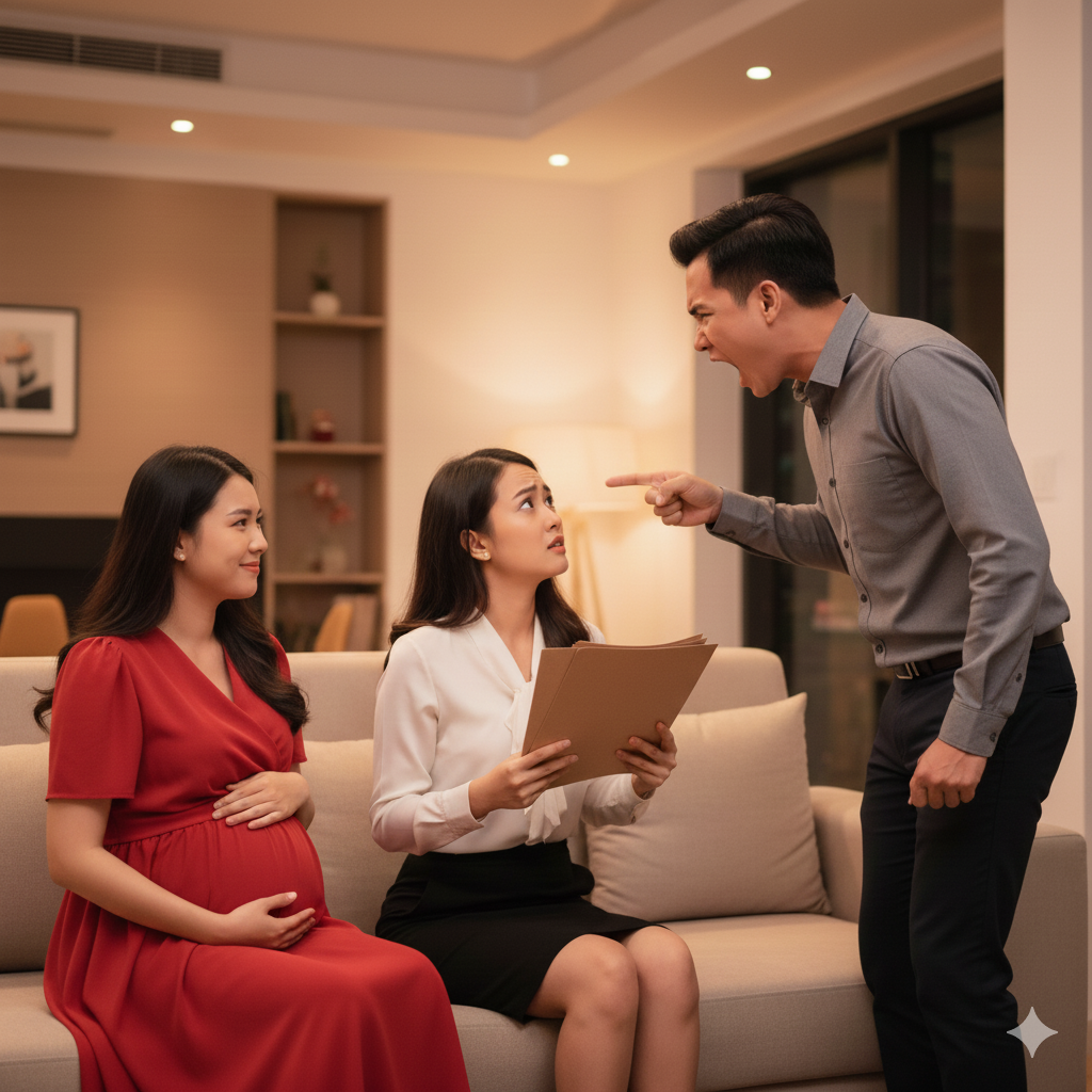 My bật dậy, chiếc bụng bầu trở nên vô nghĩa trước sự thật khủng khiếp này. “Không thể nào! Cô lừa dối! Anh Quang, cái giấy này là giả! Phải gọi luật sư, phải báo cảnh sát!” My gào lên một cách điên cuồng, mọi vẻ dịu dàng, quyến rũ trước đó hoàn toàn biến mất, thay vào đó là bộ mặt tham lam và độc ác.