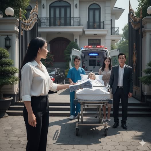 Khi xe dừng trước cổng, tiểu tam mở cửa, mặt mày đang hớn hở bỗng tái mét khi thấy nhân viên y tế khiêng giường bệnh vào. Chồng tôi, cũng vừa bước xuống cầu thang, đứng sững lại như bị trời giáng. Tôi đưa tập hóa đơn cho anh ta, giọng bình thản nhưng rắn rỏi:
