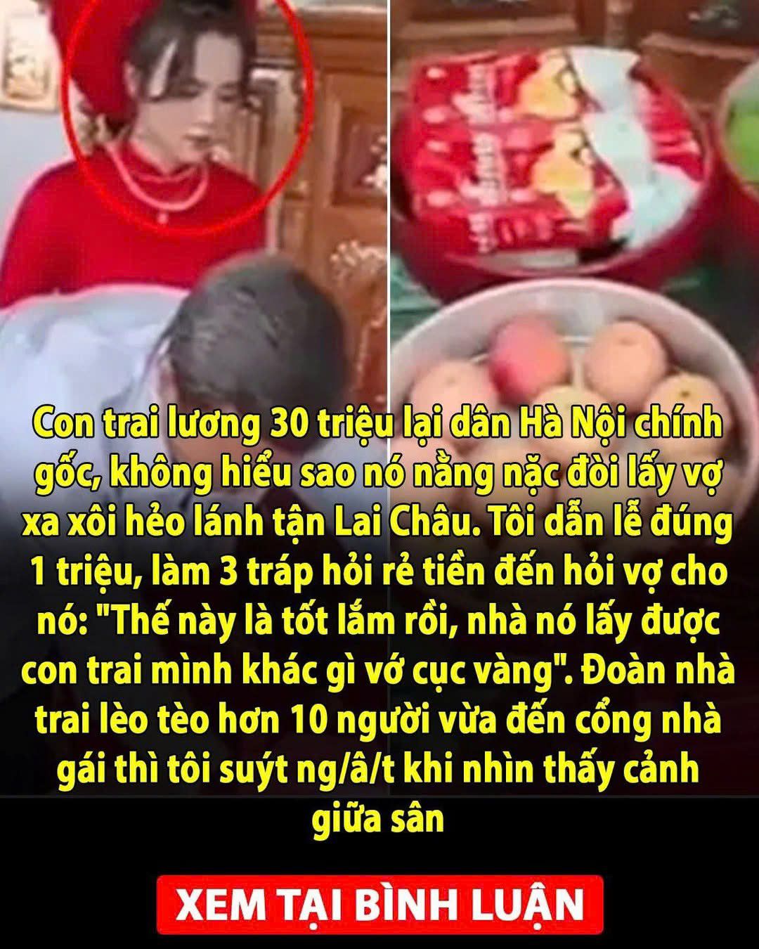 Sau khi định thần lại, mẹ Thuần vội chạy lại níu tay con trai: “Con, con mang tiền không? Thêm vào lễ dẫn cưới chứ để 1 triệu người ta cười cho”, bà hốt hoảng hỏi. Thuần cố nhịn cười, đưa 20 triệu cho mẹ. May anh cẩn thận, cố ý mang theo. Bà nhìn số tiền, ngần ngại: “Vẫn hơi ít thì phải”. Thuần buồn cười lắm mà không dám cười, mẹ anh đúng thật là, trước đấy bỏ có 1 triệu, giờ tăng gấp 20 lần lại còn vẫn chê ít. “Thế thôi mẹ ạ. Mình làm theo hoàn cảnh nhà mình là được. Không ai trách đâu”, Thuần cười bảo mẹ. Mẹ anh không nói gì nhưng sau đó vẫn lén đi vay thêm của mấy người họ hàng 10 triệu nữa.