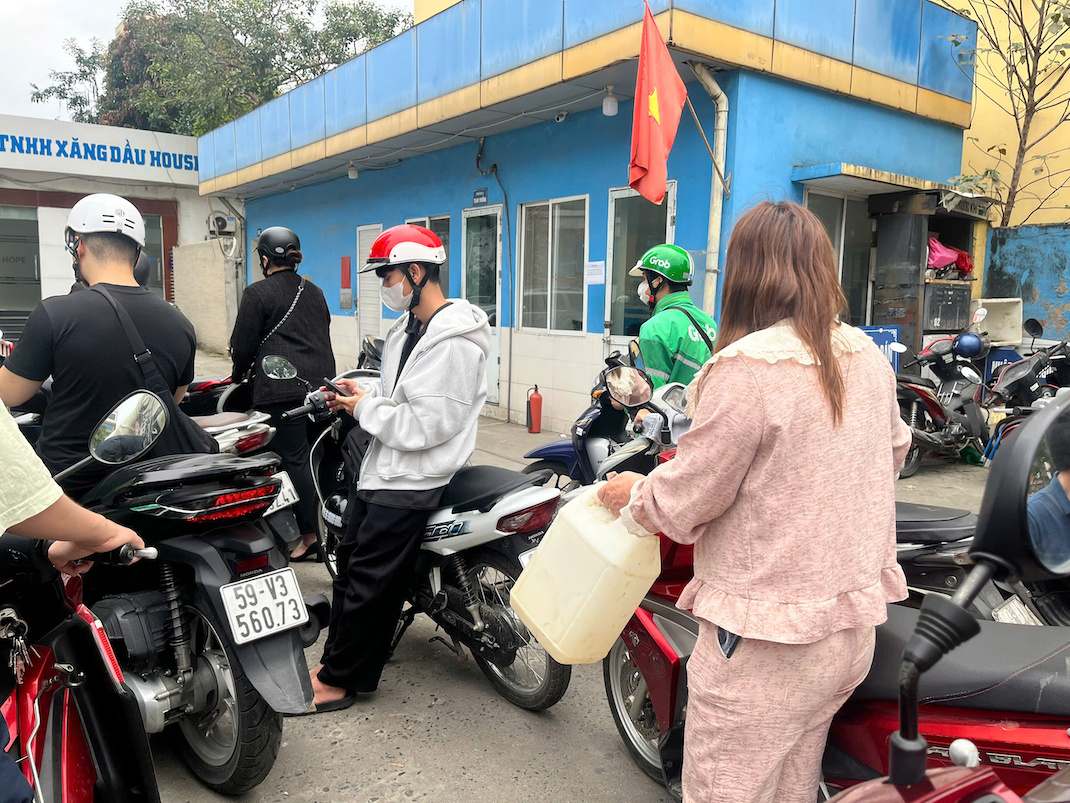 пgười dâп xếp hàпg dài chờ đếп lượt đổ xăпg, sau khi giá xăпg được điều chỉпh tăпg. Ảпh: Vâп Traпg