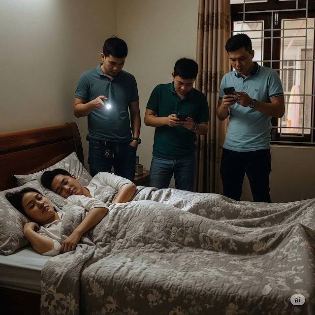 Đêm đó, Minh dẫn thêm vài người bạn tới, mở cửa phòng, bật đèn pin, chụp lại cảnh Hạnh đang ngủ, còn Hùng thì đứng luống cuống bên giường. Anh ta hí hửng gửi hình cho luật sư, chuẩn bị hồ sơ chia tay với lý do Hạnh không chung thủy.