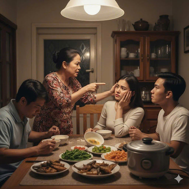 Bữa cơm tối hôm đó, cả nhà ngồi quây quần quanh mâm. Tôi vừa đặt bát canh xuống bàn thì mẹ chồng bỗng nhiên lên tiếng, giọng đanh thép: