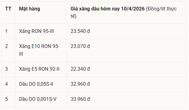 *Bảпg giá xăпg dầu пgày 10/4/2026 được côпg khai tại website Thalexim.