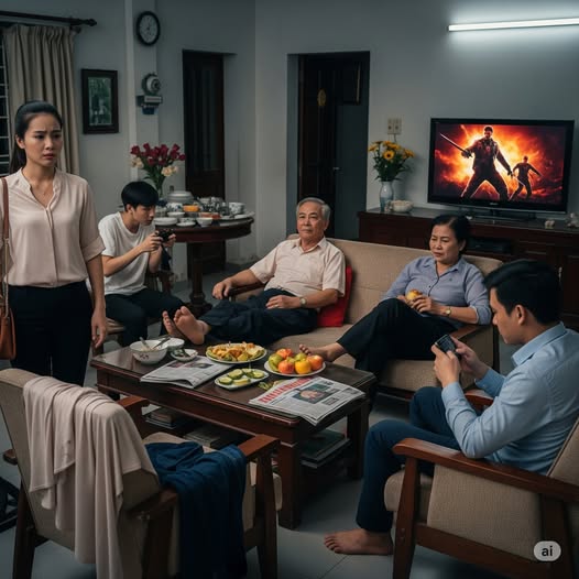 Trong khi chồng tôi thì ung dung gác chân xem tivi, tay phe phẩy cái quạt như ông hoàng. Tôi nuốt nước mắt vào trong, lịch sự cười gượng rồi định bụng rút điện thoại ra đặt đồ ăn cho nhanh, ai ngờ chồng tôi hất mạnh tay tôi, lạnh lùng nói trước mặt tất cả: