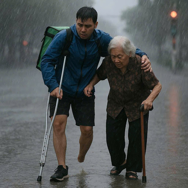 Anh Shipper bị m/ất một chân gồng mình đi ship hành giữa trời mưa gặp bà cụ gặp nạ/n đã bỏ hết hàng hóa cứu giúp và cái kết …